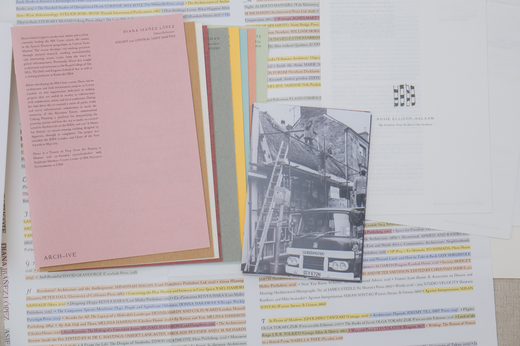 Arch-ive is a platform investigating the libraries of urban practitioners and the way in which they use, collect and display books and other references. It began as an online platform, always with an idea in mind to publish a book. Edition 3 has evolved to contain 9 interviews, 3 essays, an extensive bibliography and a series of photographs, presented in an 'archival' folder. The format is an attempt to promote the joy of collecting, but also of drawing together (correlating) references. During interviews, guests have often commented on the constellation of references that form as they browse their shelves, looking for lost, migratory or unfound books. Our aim is that the slackness of the folder allows you to add and subtract as you see fit; to delve deeper into a series of interviews and essays that touch on ideas of what it means to collect. The essays build upon these ideas, delving into the role of the archive in various manners; Rosie Ellison-Balaam interrogates the various archives we possess, situated across various platforms; Loretta Bosence calls for a builder's archive, to ensure traditional methods of building are not lost; and Krish Nathaniel discusses the importance of archival research and footage in artistic practice. Ultimately, these essays present ideas on why archives are useful and prompt ideas for their criticality moving forward.